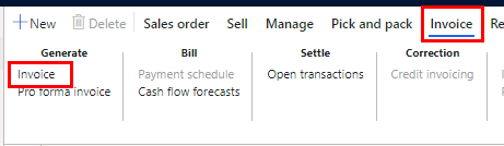 - Upon performing this action, the payment will be authorized to the Credit card chosen previously, and you will be brought back to the Sales order screen. At this point the order will need to be invoiced for the Gift card to be created, and the balance to be added to it. To do so, navigate to Invoice at the top of the page and select Invoice under Generate.