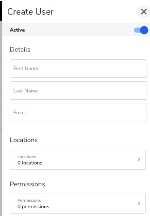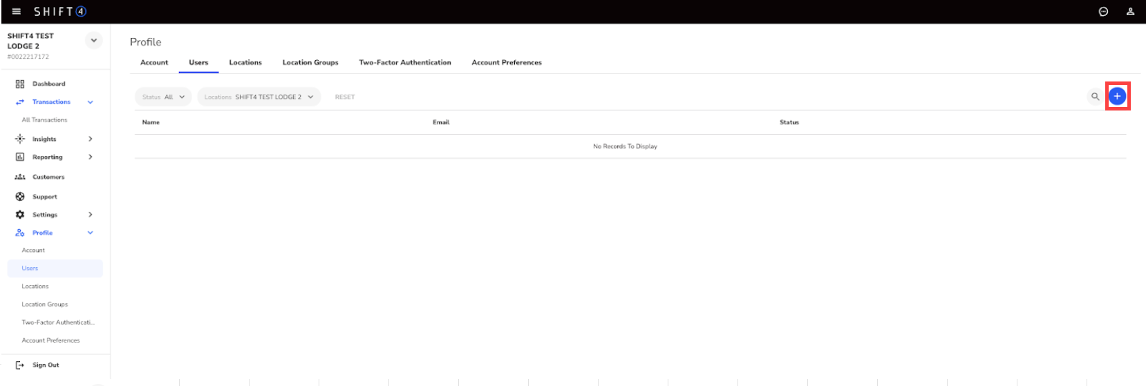 You’ll find a list of all users created for the selected locations, including their name, email, and status. - Select the + (plus) icon in the top-right corner of the screen.