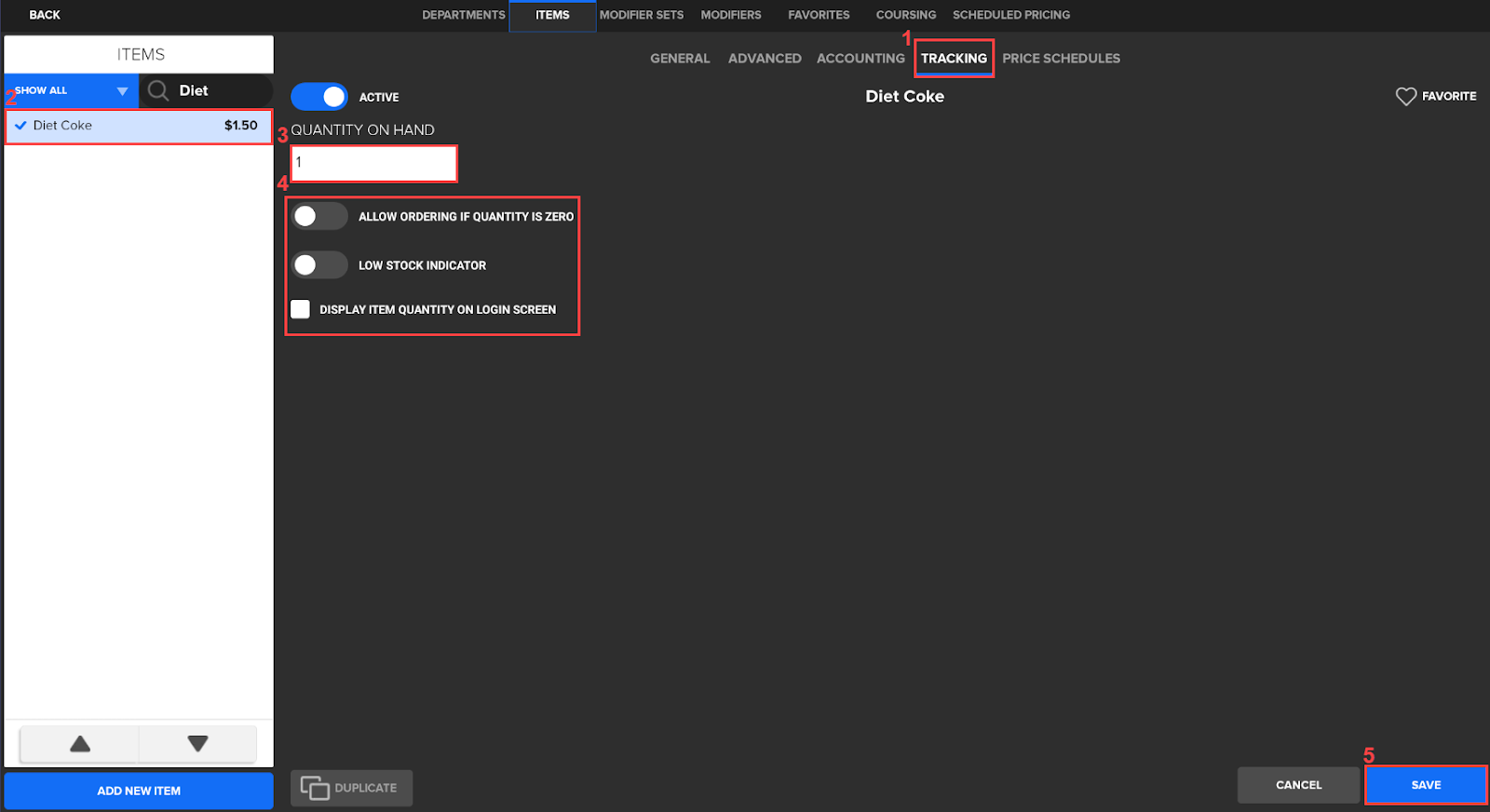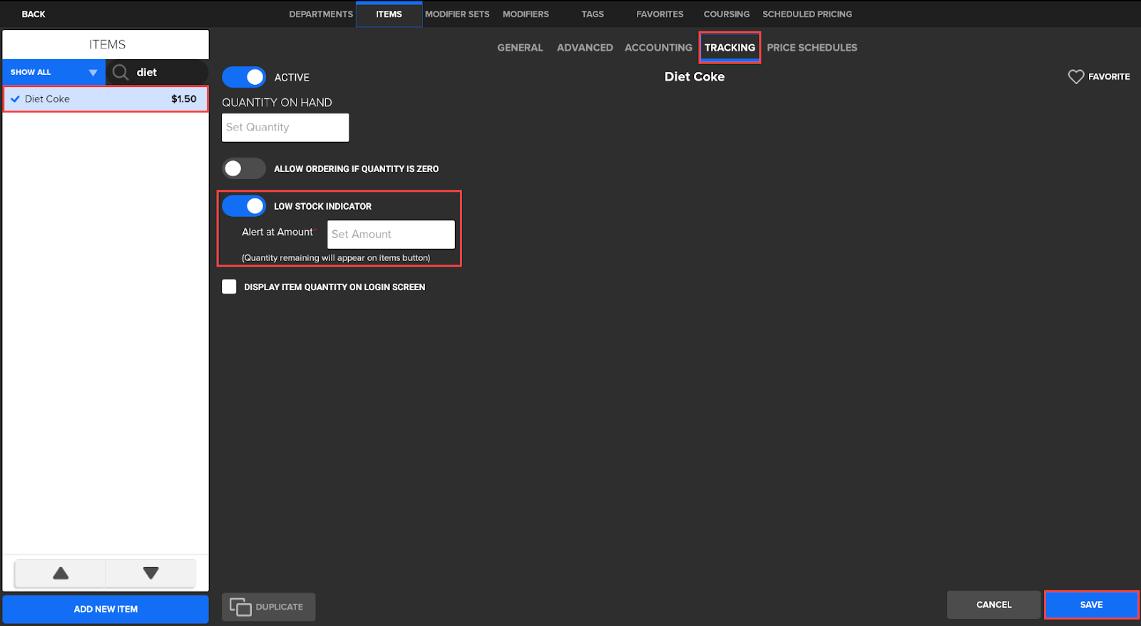 Set Up Item Inventory Tracking on SkyTab POS or SkyTab Glass