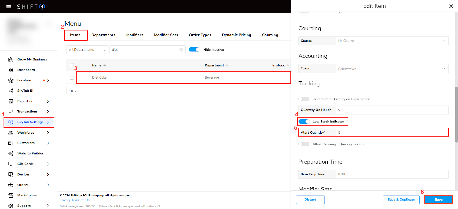 Set Up Items to Display as Almost Sold Out on SkyTab POS or SkyTab Glass