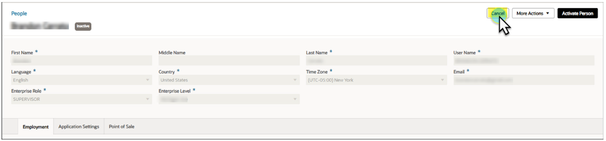 It will automatically Deactivate the old employee. - Press the Cancel button when you get to a grayed out employee view.