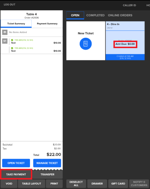To address this issue, the Take Payment option must be selected again, followed by choosing either Print Receipt or No Receipt.