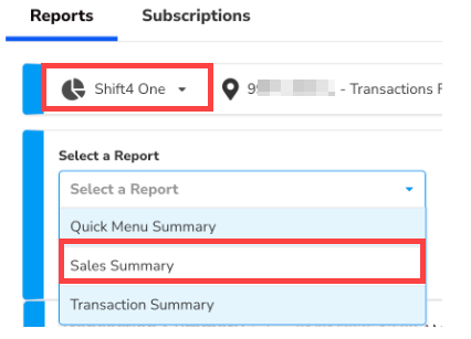 - For Shift4 One, under Select a Report, choose Sales Summary.