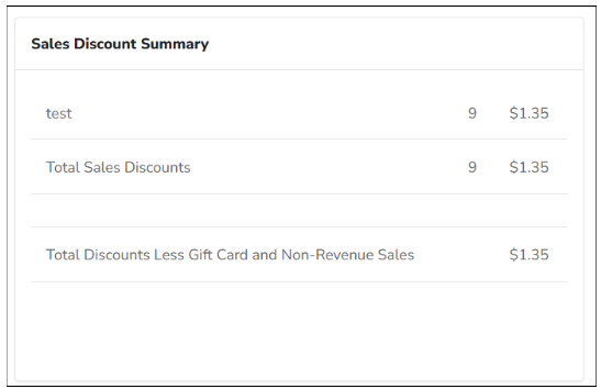 Sample: Activity Summary Report showing the discounts applied against Gross Sales