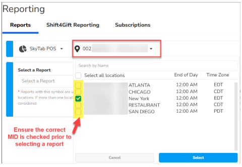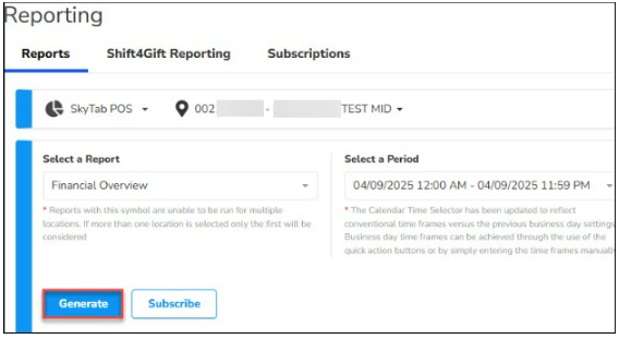 Important: Ensure the correct MID and timeframe are defined before generating the report to ensure you are retrieving the correct information.