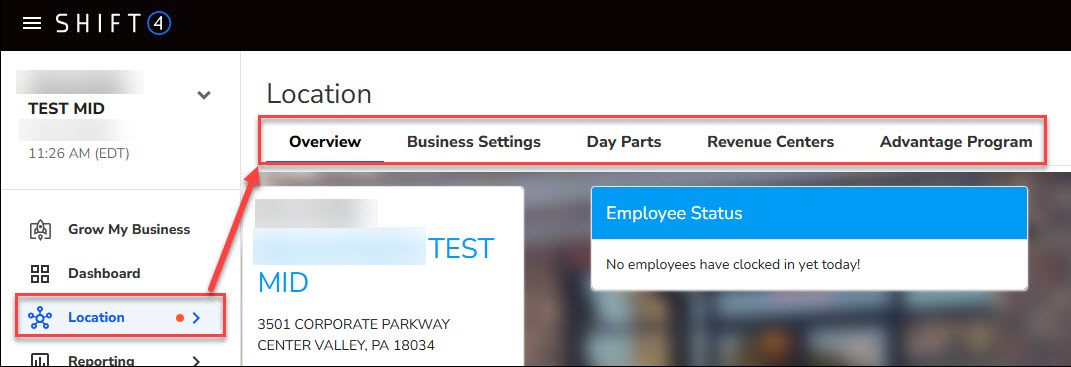 | Business Settings | Check Start of day, End of Day, Credit Card, and Reporting timeframe |