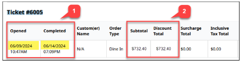 (2) One reason a ticket's Discount Total does not equal the Subtotal is that another ticket was created when this original ticket could not be deleted, and later, this ticket was reversed.