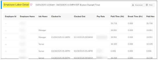 Need insight into employee hours and pay? The Employee Labor Detail report tracks shifts, breaks, pay rates, and hours worked for each employee. It breaks down paid and overtime hours, making it easier to review labor costs and analyze payroll by employee. This helps businesses manage scheduling, monitor labor efficiency, and ensure payroll accuracy.