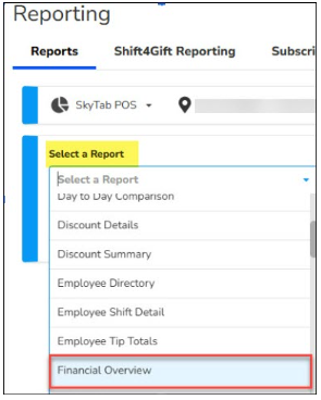 Note: Each selection will have different reports associated. - Go to Reports > Financial Overview.