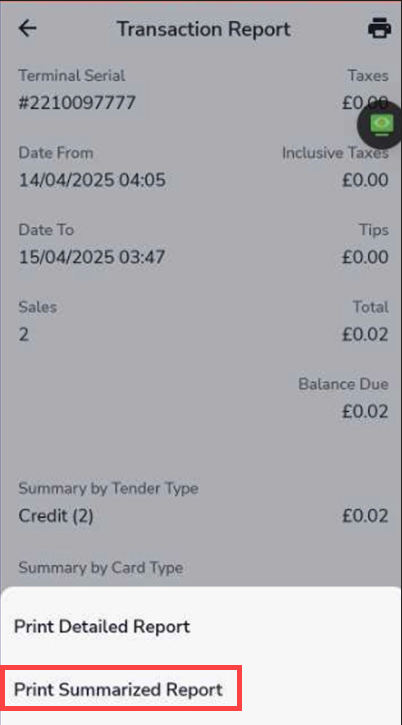 Description: Learn how to view or print the Terminal Transaction Summary Report on SkyTab SOLO.