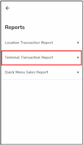 - Select the Terminal Transaction Report.