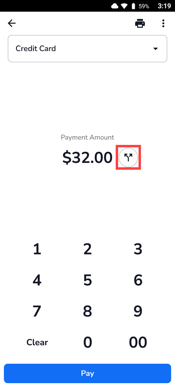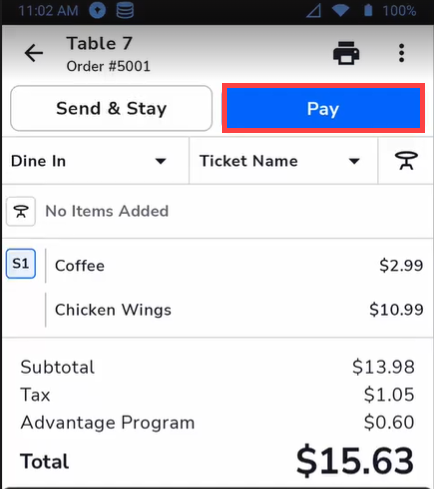 - Tap Pay on the open ticket.