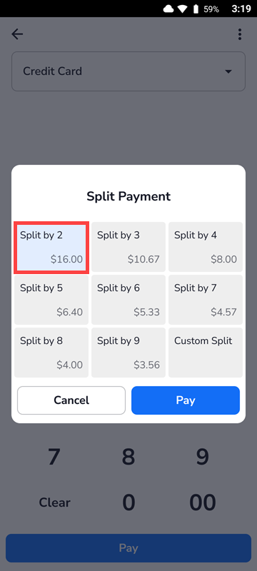 - Tap the number of ways you want to split the check.
