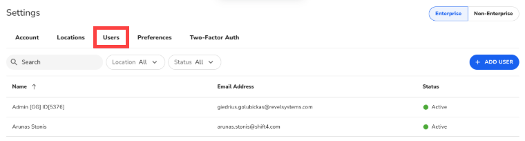 SkyTab Multi-Location Management introduces a new Enterprise mode for managing users under Settings > Users.