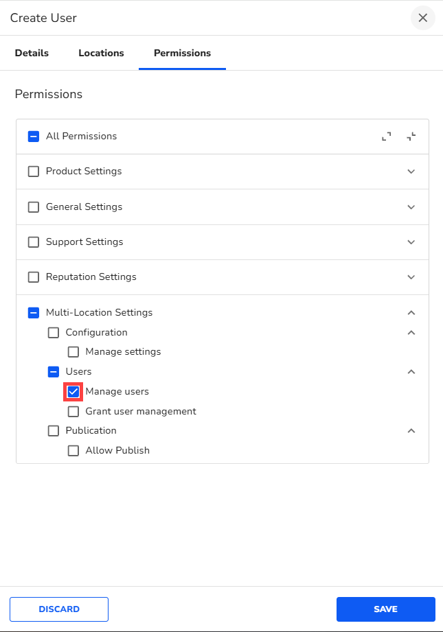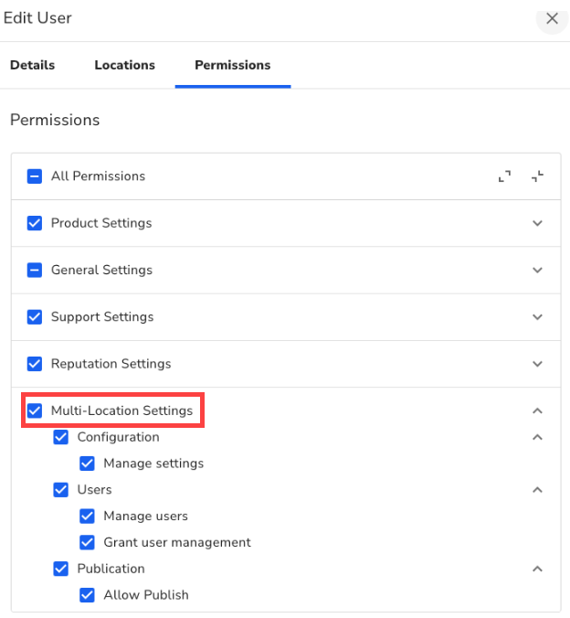User Permissions that affect Enterprise are located under Multi-Location Settings.