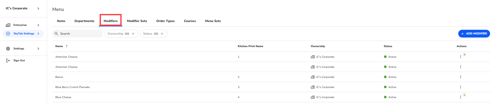 Create and Manage Modifiers in SkyTab Multi-Location Management