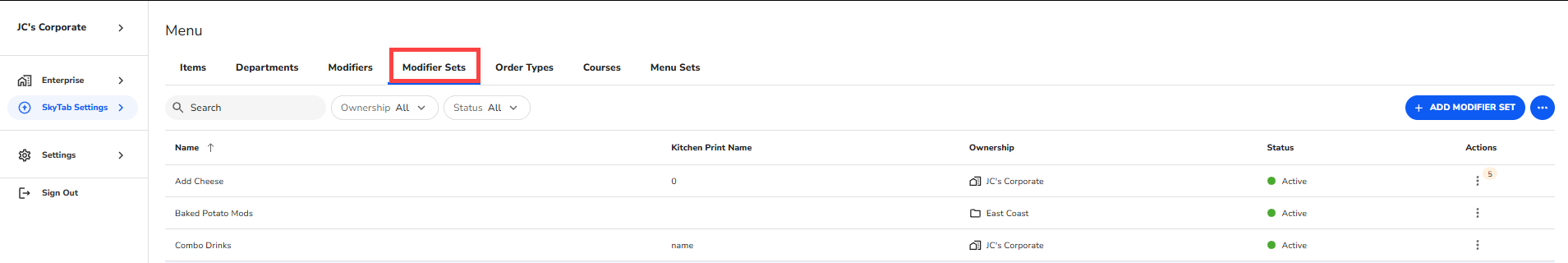 Create and Manage Modifier Sets in SkyTab Multi-Location Management