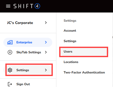 - Navigate to Settings > Users.
