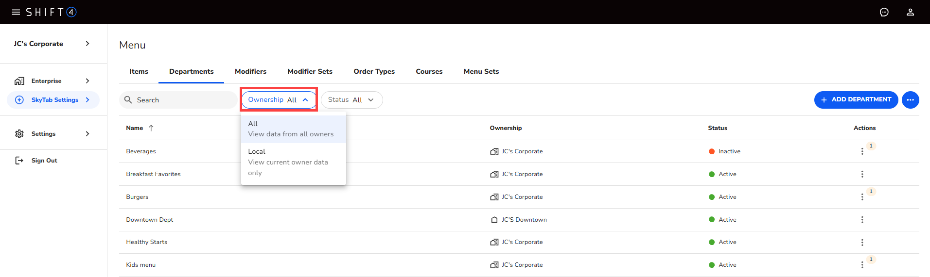 Description: Learn how to enable location-specific menu data creation and allow users to manage the menu in SkyTab Multi-Location Management.