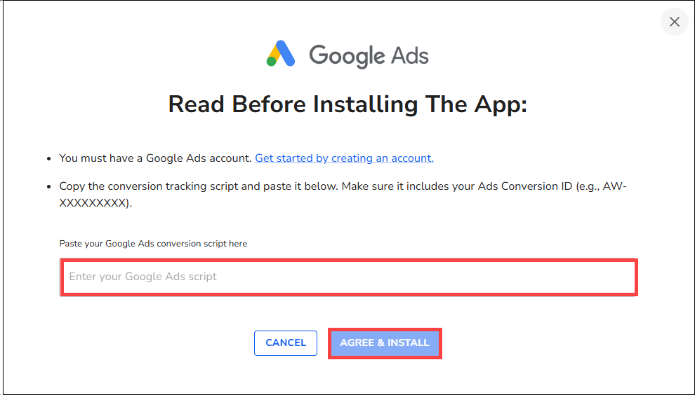 - Enter the Tracking ID provided by Google Ads (e.g., AW-11111111111).