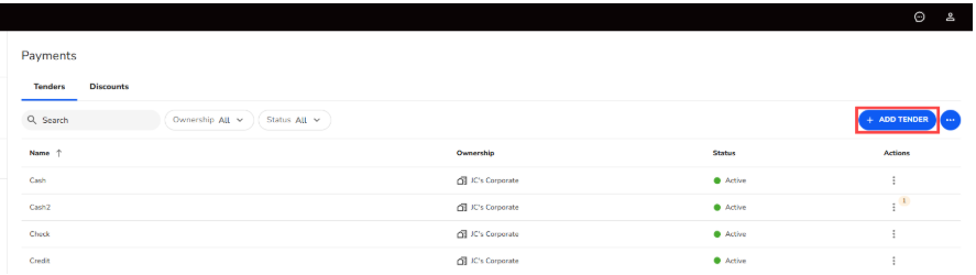 - From the Tender screen, select the three horizontal dots in the upper right corner.