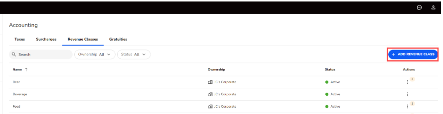 - Navigate to SkyTab Settings > Accounting >Revenue Classes.