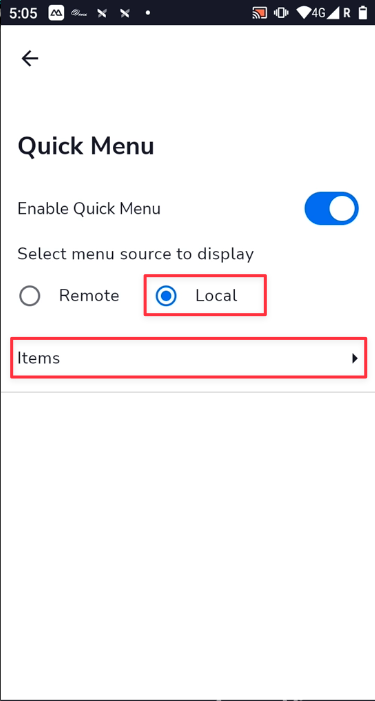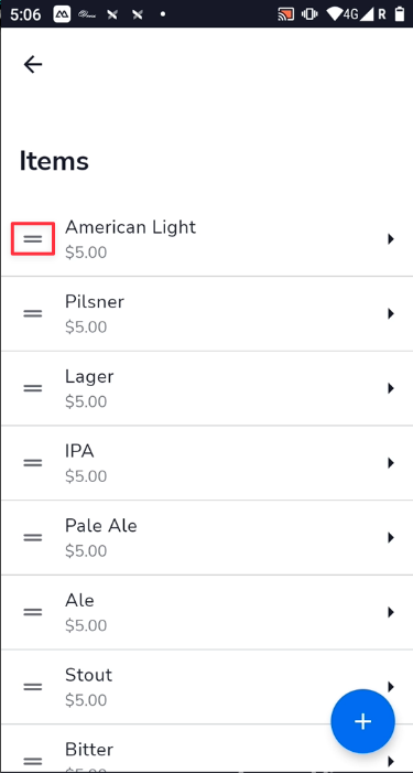 When your menu is set to Local AND items are created in the Local Menu, you will see handles next to each item. - Tap, hold, and drag these handles to reorganize these items in any order you want from top to bottom (items at the top appear first in your Quick Menu).