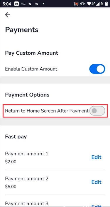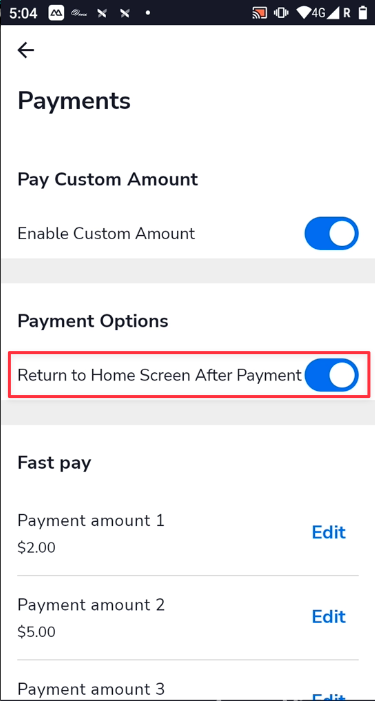 Set SkyTab SOLO to Return to Previous Screen After Payment