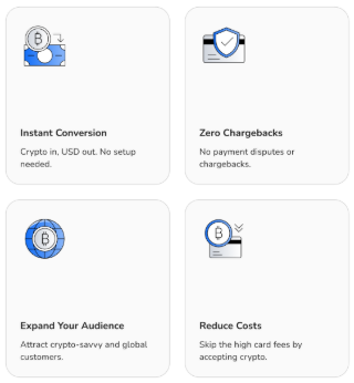 Important: The Pay with Crypto feature is currently only available to select merchants. If you do not see Pay with Crypto in your Grow My Business section, please sign up for our feature waitlist here. - Review the benefits of accepting crypto and how the feature works.
