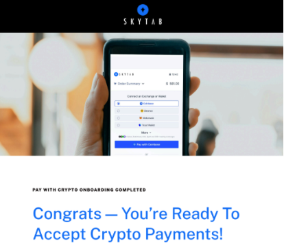 - Under the Explore SkyTab section, select Pay with Crypto and start the setup.