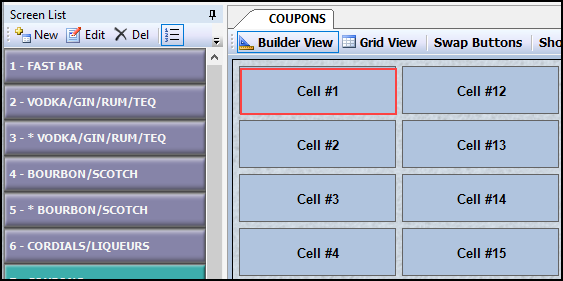 - Select the desired screen for the coupon to reside (in this example, the coupon will reside on a screen labeled COUPONS).