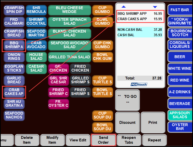 - Touch two appetizers that are eligible for the coupon, then touch Send Order.