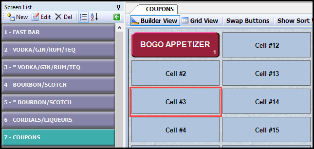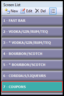 - Select the desired screen for the coupon to reside. (In this example, the coupon will reside on a screen labeled COUPONS.)