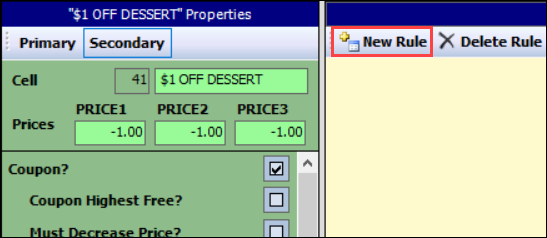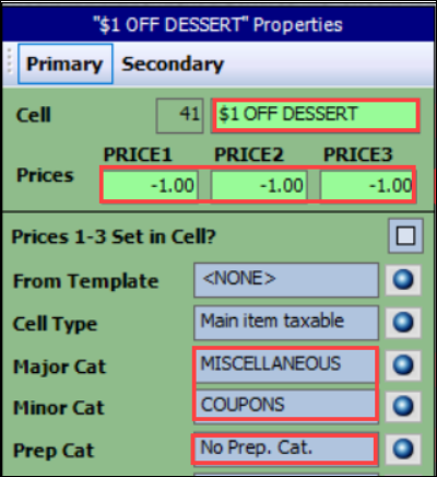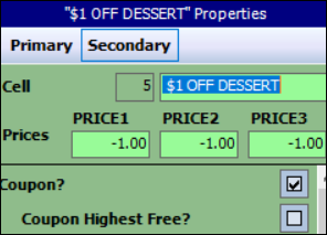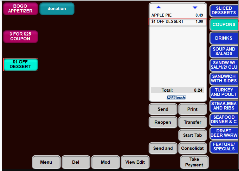 Description: This article provides the steps to configure a $1 Off Dessert Coupon in POSitouch.