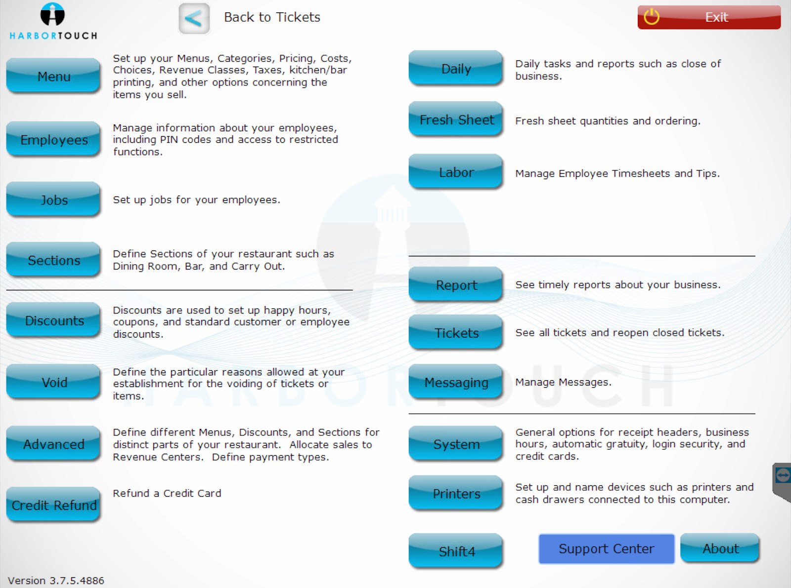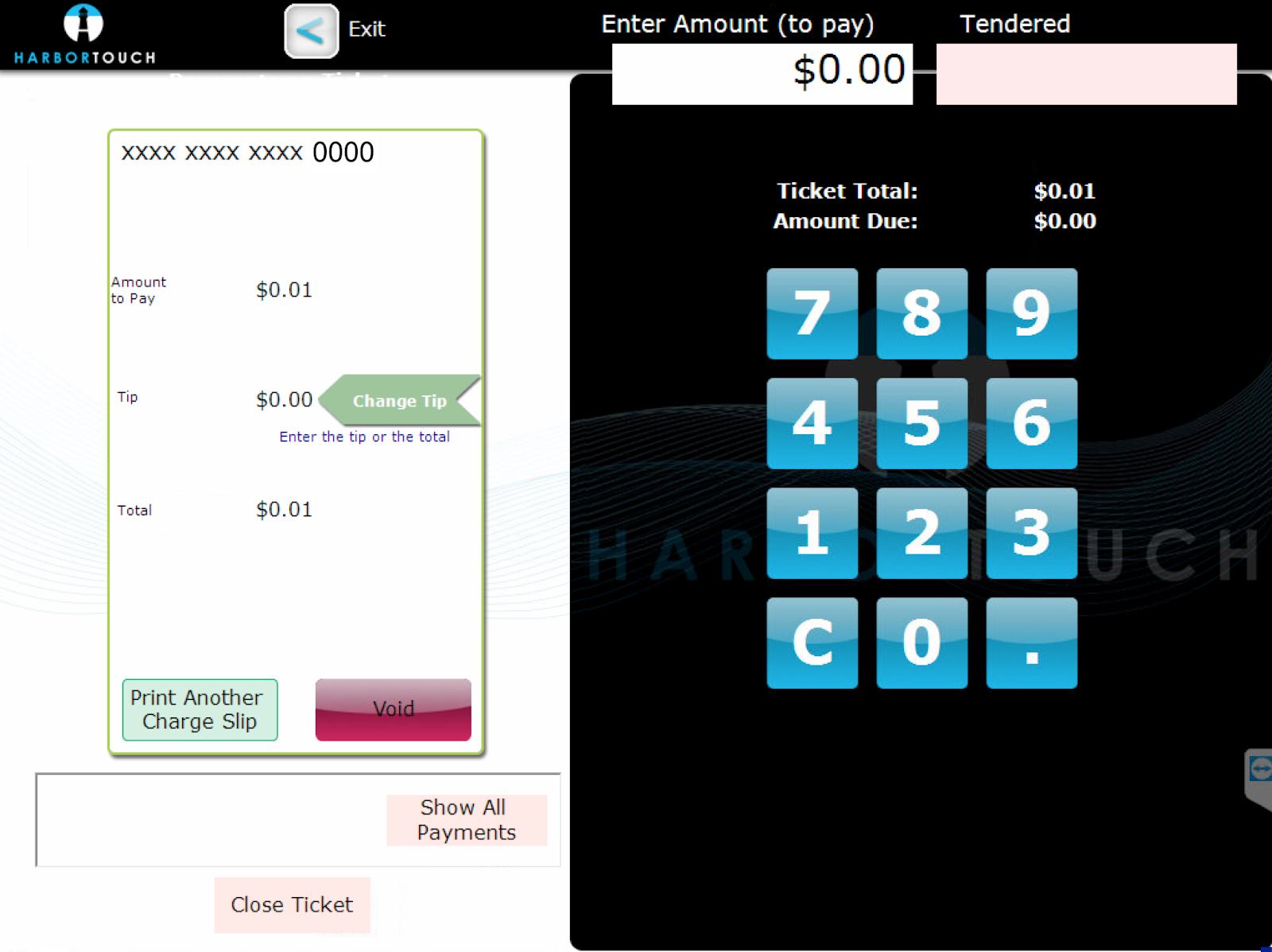 - Select Void and then Yes on the verification pop-up, then select Exit to return to the ticket screen. Once there, select Void Ticket to commit the voiding of the ticket.