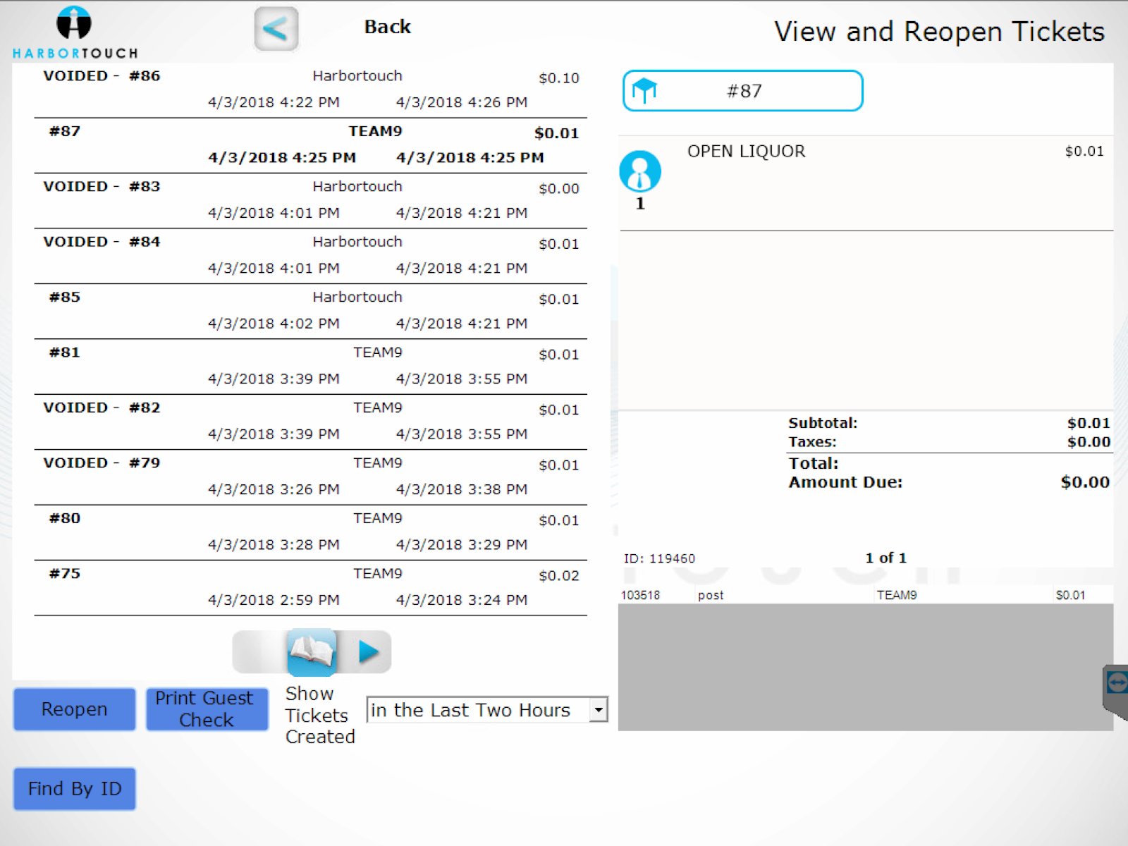 - Select the desired transaction and press Reopen in the lower left to be taken back to the Order Entry screen. Press Pay to process the void.