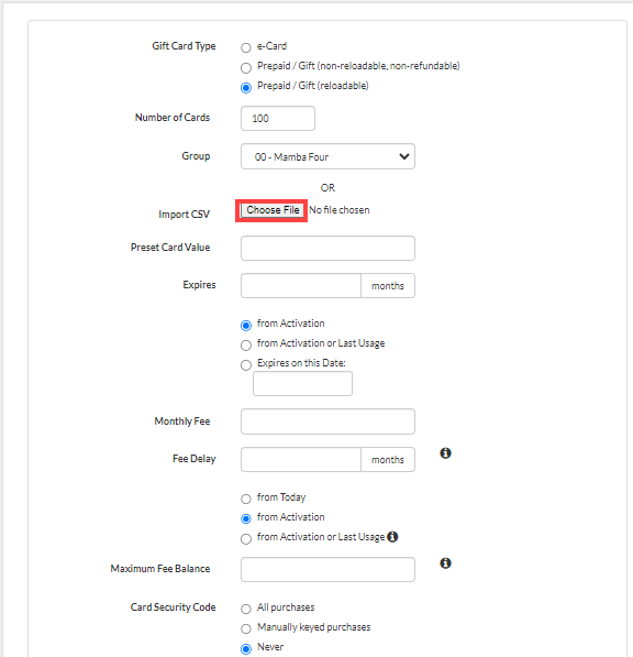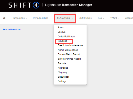 First, create a Comma Separated Value (CSV) file of the card numbers and your new associated balances and import them. Once the file is ready, log in to Lighthouse Transaction Manager (LTM) and import the file.