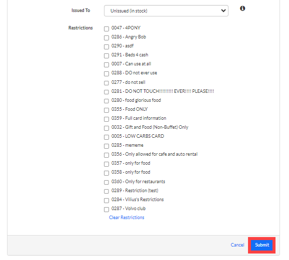 - A confirmation window will display; however, it will say "0 cards issued at various values..."