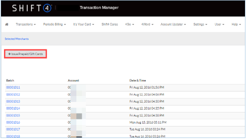 - Select Issue Prepaid Gift Cards.