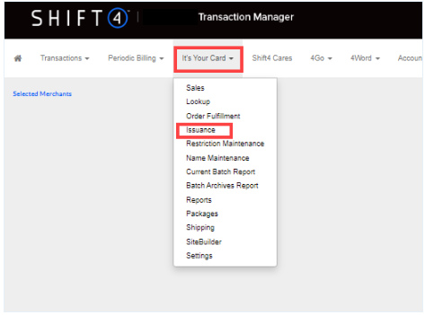 - Go to It's Your Card (IYC) > Issuance.