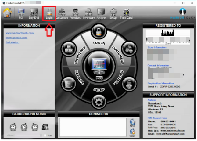 - To log in to the POS system, select the Login icon located on the screen. Upon selecting this icon, a login window is displayed.