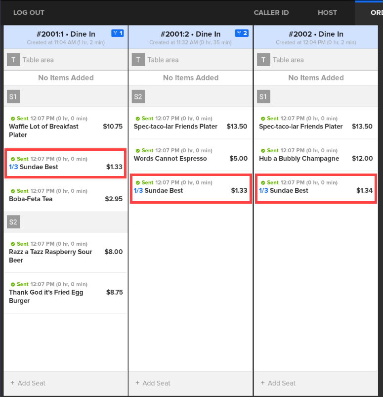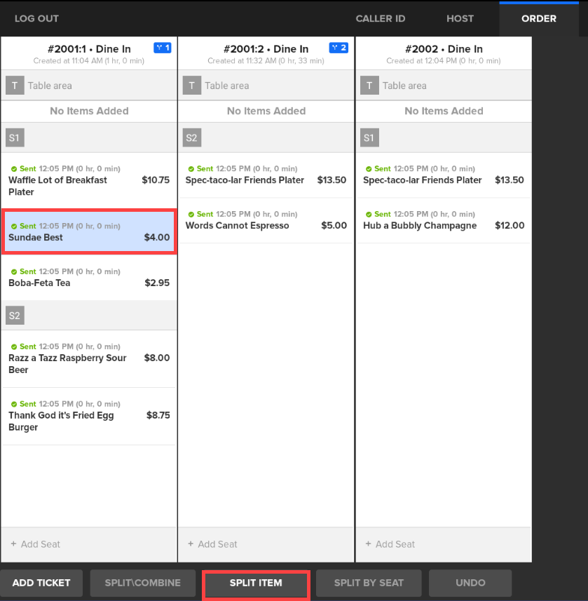Once you have satisfied the requirements for splitting an item, use the following steps to split an item. Split Item allows you to select an item and split it evenly across multiple selected tickets.