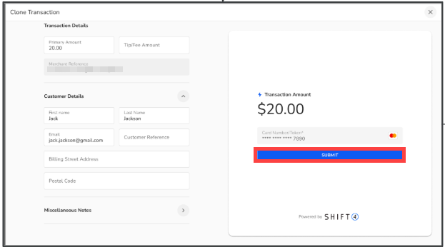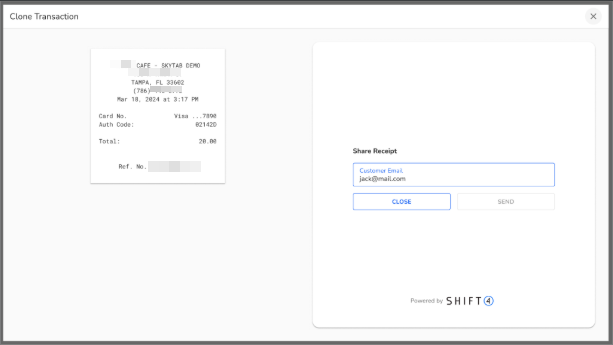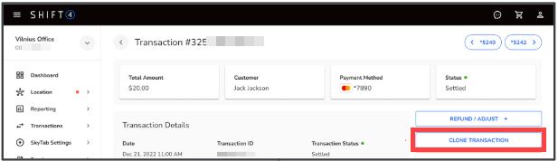 Description: Easily create a new transaction from an existing one to add charges or tips without re-entering card details. The Clone Transaction feature streamlines transaction management and ensures accuracy.
