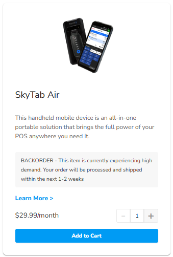 Shift4 Knowledge SkyTab SkyTab Air Getting Started Order a SkyTab Air August 27, 2025 19:32 Updated Description: Learn how to order a new SkyTab Air.Visit the Order SkyTab Hardware article for instructions. Comments 0 comments Please sign in to leave a comment.