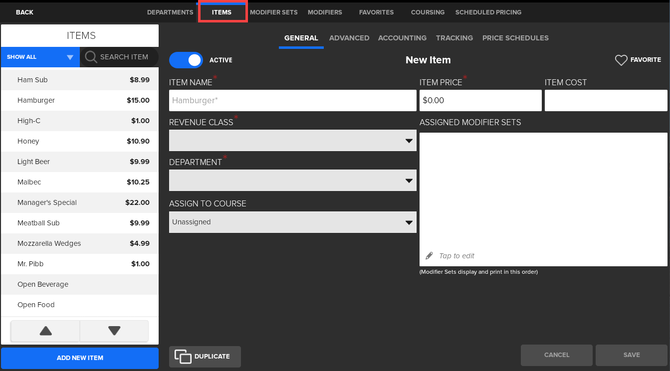- Fill in required details (Name, Revenue Class, Price, etc.).