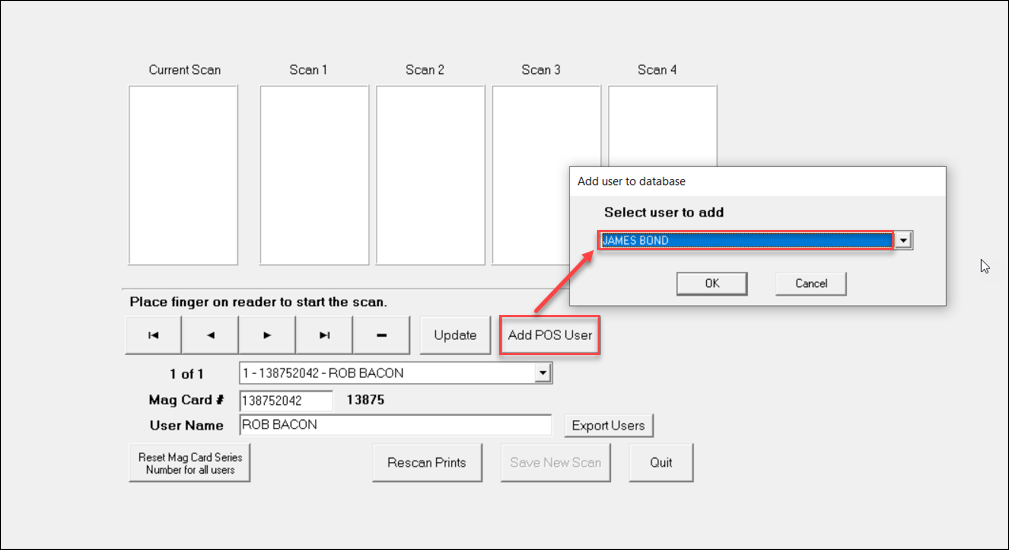 - Select Add POS User. Select a user from the list.