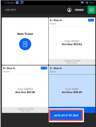 Auto Split by SeatNote: This feature is available only for merchants with at least one SkyTab Air. |