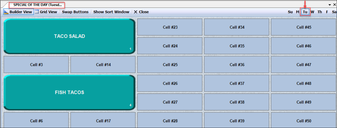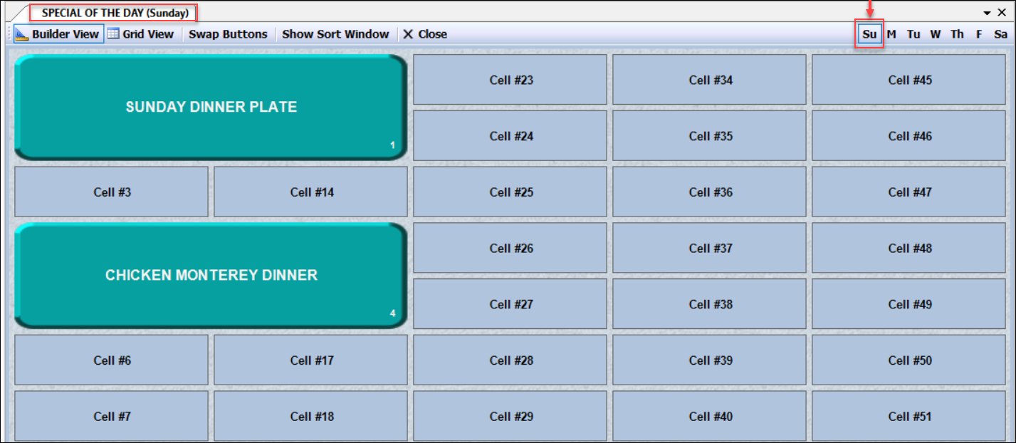 - Upon selecting a screen that is set up as a Daily Special Screen, the default day displayed is Sunday.