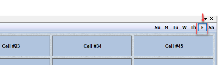 - Upon selecting the screen, the day of the week appears at the top left. In this example, the Sunday screen is displayed, which is the default day of the week.