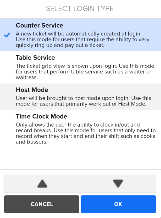 - Ensure the Login setting is NOT set as "Time Clock Mode."